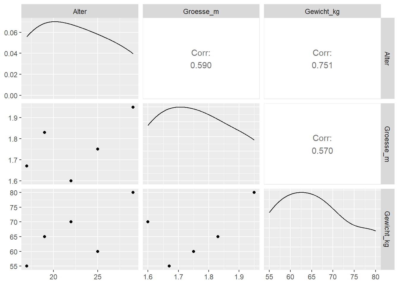 cor(method = 'pearson') Groesse_m Gewicht_kg